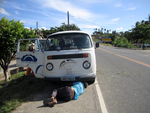So there I was in a favela in the pouring rain with Coco in takeoff position. Luckily the rain eventually stopped and the sun came out (along with all the neighbors). Of course this gringo and his flying car was the spectacle of the neghborhood but the people were SUPER cool. At one point I probably had about 10 people trying to come up with solutions and offering their help. This along with about a dozen neighborhood kids who left their cartoons in favor of the spectacle I had created. In the end a towtruck came and rescued Coco and aside from the 100 Reales that it cost me to get her out it was a worthwhile adventure, spending 3 hours hanging out with the people and kids of the favela. Some photos of my entourage: