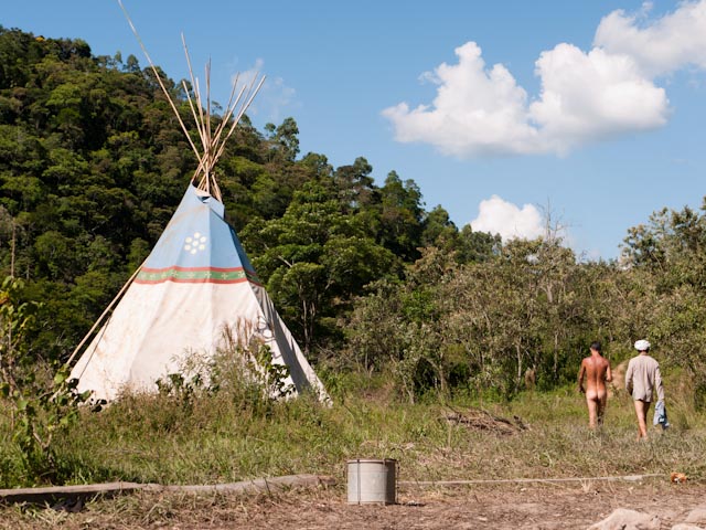 First stop after Rio was a hippie festival that Vanessa (Our couchsurfing angel in Rio) had told us about.  Its called a Rainbow Gathering and they happen all over the world and last for 30 days.  The main ideas behind these are peace, love, harmony, freedom and community (Yea…like I said, hippies.).  I had been to a very small one in Guatemala years ago and Safira had been to several.  It was more or less on the way and free so we stuck the destination into Ecowapi (the GPS) and hit the road.  It was basically what you might expect…lots of hippies living in the forest (The place was really stunningly beautiful with a nice river to swim in and waterfalls)….yoga, drum circles, dreadocks, people walking around naked, etc, etc.  These are things that I can and do relate to and feel comfortable around normally but these people were WAY into the whole thing…so much so that it was hard for me to really feel part of it.  But it was still an experience which after all is what traveling is all about.  It was interesting observing the characters in this community (some were pretty far out there) and the ideals of the community in motion.  We stayed only for two days.  Knowing that my return to reality was right around the corner, I figured “What the hell…” and I gave myself over to their way of life for the brief time I was there and had fun with it.