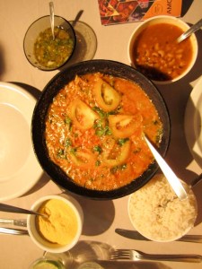 So Salvador was sadly where I was to loose my travel partner.  Safira had to catch a flight back to Europe so we splashed out a little bit with a departing dinner at a nice restaurant that served local food.  we shared a Vatapa with crab.  Vatapa is like a soup made from coconut milk, Dendê Oil (A very heavy orange oil made from African palms), and spices.  It was awesome!