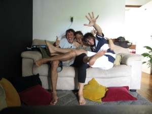 One amazing memory was when we stopped in a tiny town on the ocean called Itaunas.  We had to drive for almost an hour on a dirt road (flanked on both sides by cultured eucalyptus forests) to get there.  First thing we saw when we pulled into town was a place selling homemade ice cream.  We chat it up with the guy working there who happens to be the owner and who was really cool.  He gives us a behind the scenes tour of how he makes the ice cream and lets us taste all sorts of flavors and then we tell him we are going to the beach nearby he just says “Give me five minute to close up the store and ill take you to a better beach”.  So he just closes up the store (at noon on a Sunday) tells us to jump in his car and the next thing you know we are driving down dirt roads passing beers back and forth an on our way to some secluded beach.  So we hang out there for a while then he tells us he has a fish the size of your arm in his freezer and suggests that we cook while he reopens the store.  So we ended up having this huge feast and drinking caipirinhas (and we got to use his shower!!!…I think it was out first proper shower in 4 days).