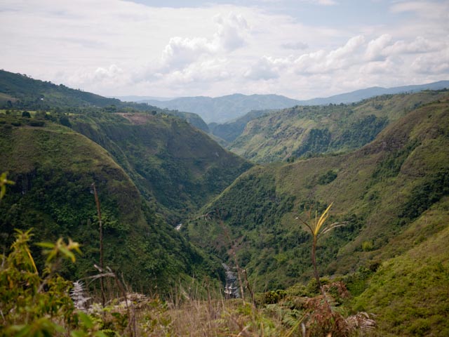 Then up,up, up, past the two waterfalls I had seen the previous day, past coffee plants being cultivated on hillside so steep that I had to wonder how they managed to plant and harvest them. I only saw two people in an hour 20 minutes that I was on this trail, a father with his son of about 8 years old who both smiled and greeted me with a “Buenos dias”. At the top of the otherside, the directions Clemencia gave me became a bit unclear, I was supposed to head to a small town called San Jose where I could catch a bus back to San Augstin, but I made a wrong turn. Instead I landed on a small rural road that I walked on for about an hour and half until it brough me to the main highway where I caught a ride back to town. Not sure what the road to San Jose is like but the one I ended up on was amazing! It took me past miles and miles of coffee plantations, friendly locals, huge canyons, valleys, ranches and small homes.