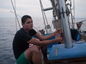 Piloting duties were shared between me, Jose, and Tilsen in two and a half hour shifts. Piloting was an easy job. My instructions were simply to keep the boat on its bearing, stand up every ten minutes or so and scan the horizon for the lights of other boats, and if the winds changed direction to wake up Tilsen or Jose. I liked being on my shift, especially at night when I was alone with the ebb and sway and the stars. The feeling of adventure and of being alive and the excitement it produced mixed with the calming effect of the waves and the breeze in such an intoxicating way that I never wanted my shifts to end.