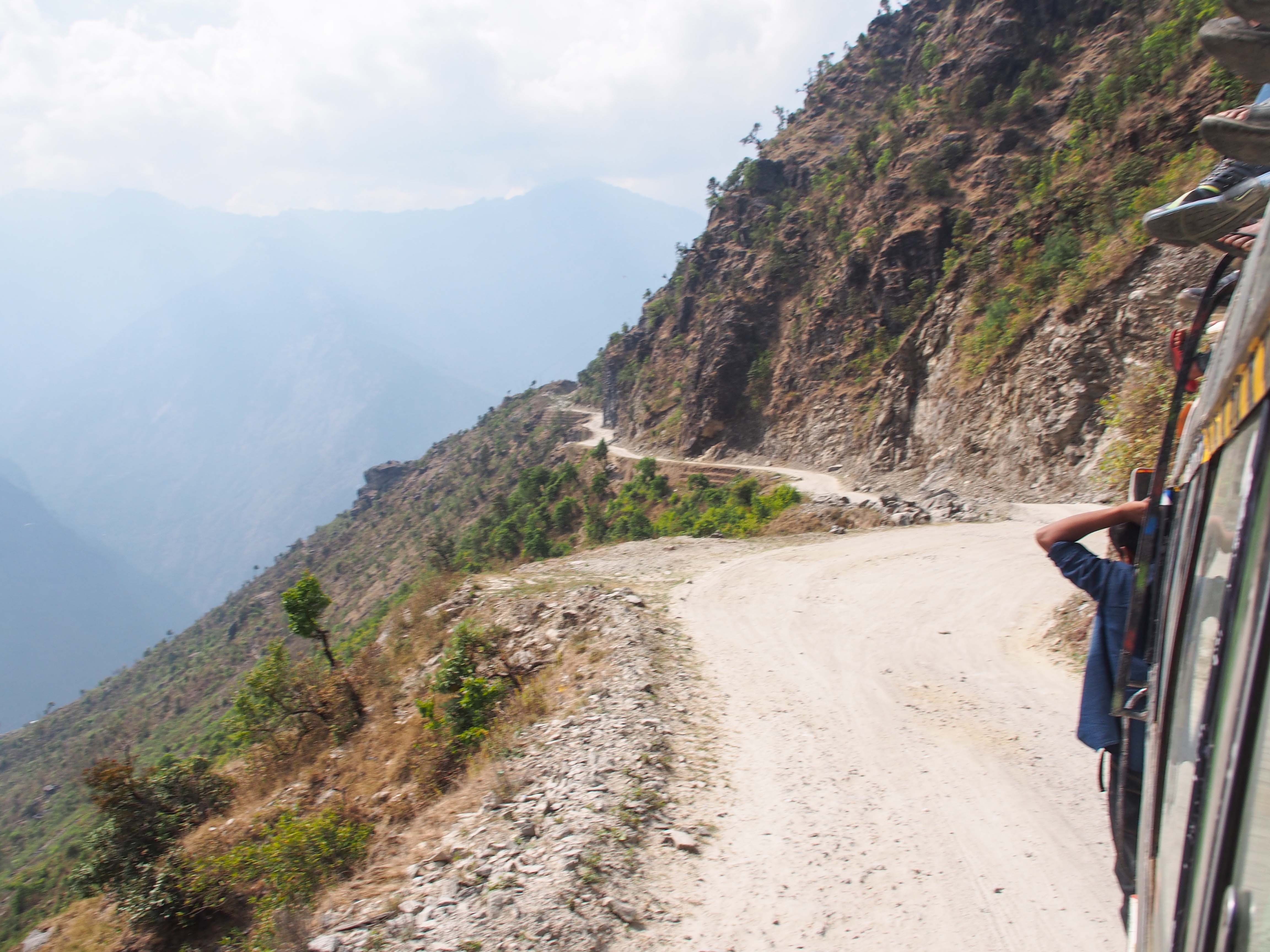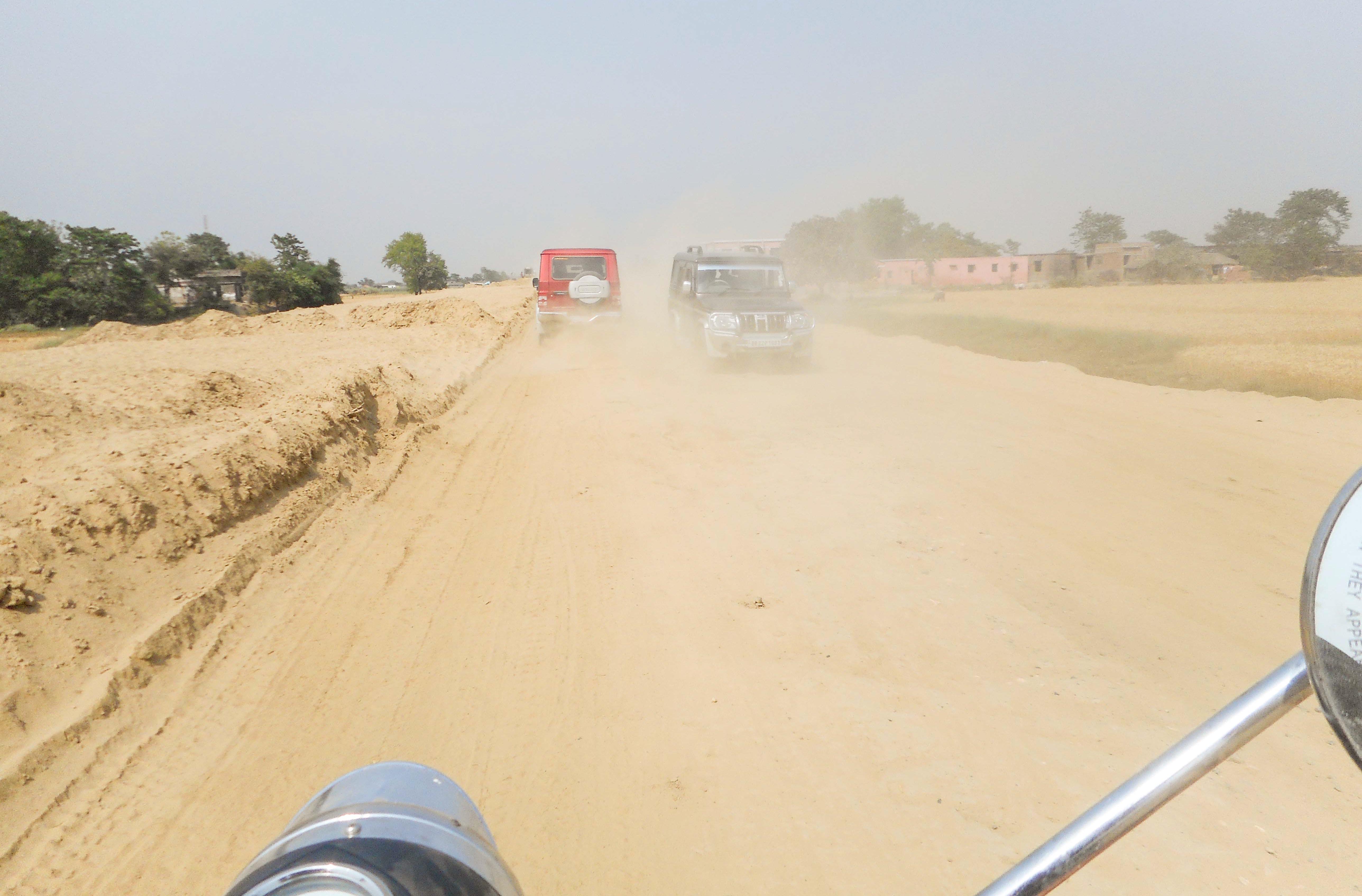 We took the wrong way from Varanasi across the Nepal border to Kathmandu. We spent three exhausting days sucking dust into our lungs and bumping along atrocious cratered dirt roads like these: