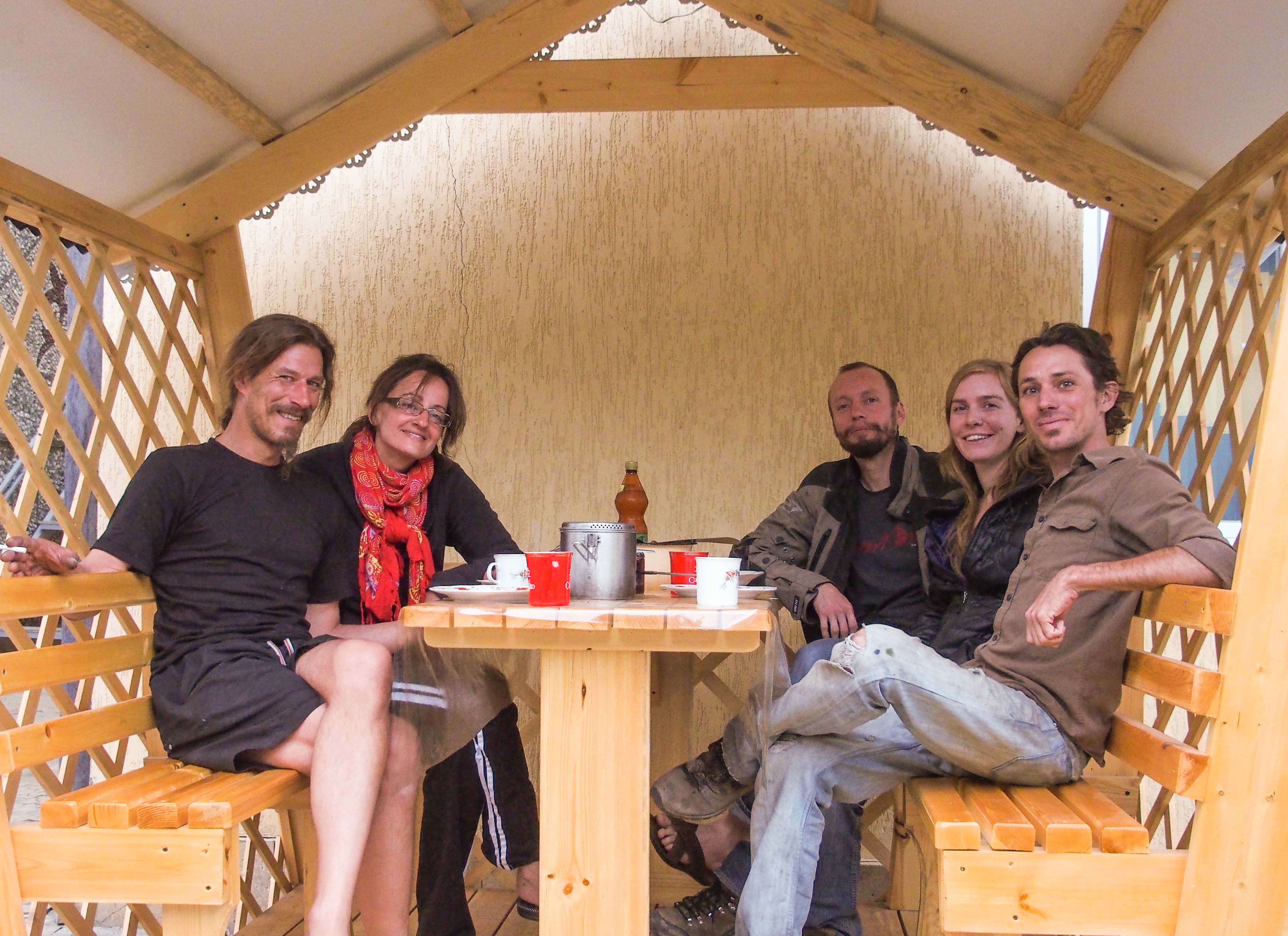 - While filling up at a petrol station we were approached by two gregarious Canadians who have been working for a Canadian gold mine in Kyrgyzstan and living there for years. With a storm looming on the horizon they took a look at our pathetic preparations and kindly invited us into their home which, to our weary traveler bones was more like a palace. We spent two evenings with them feasting, drinking and swapping stories.