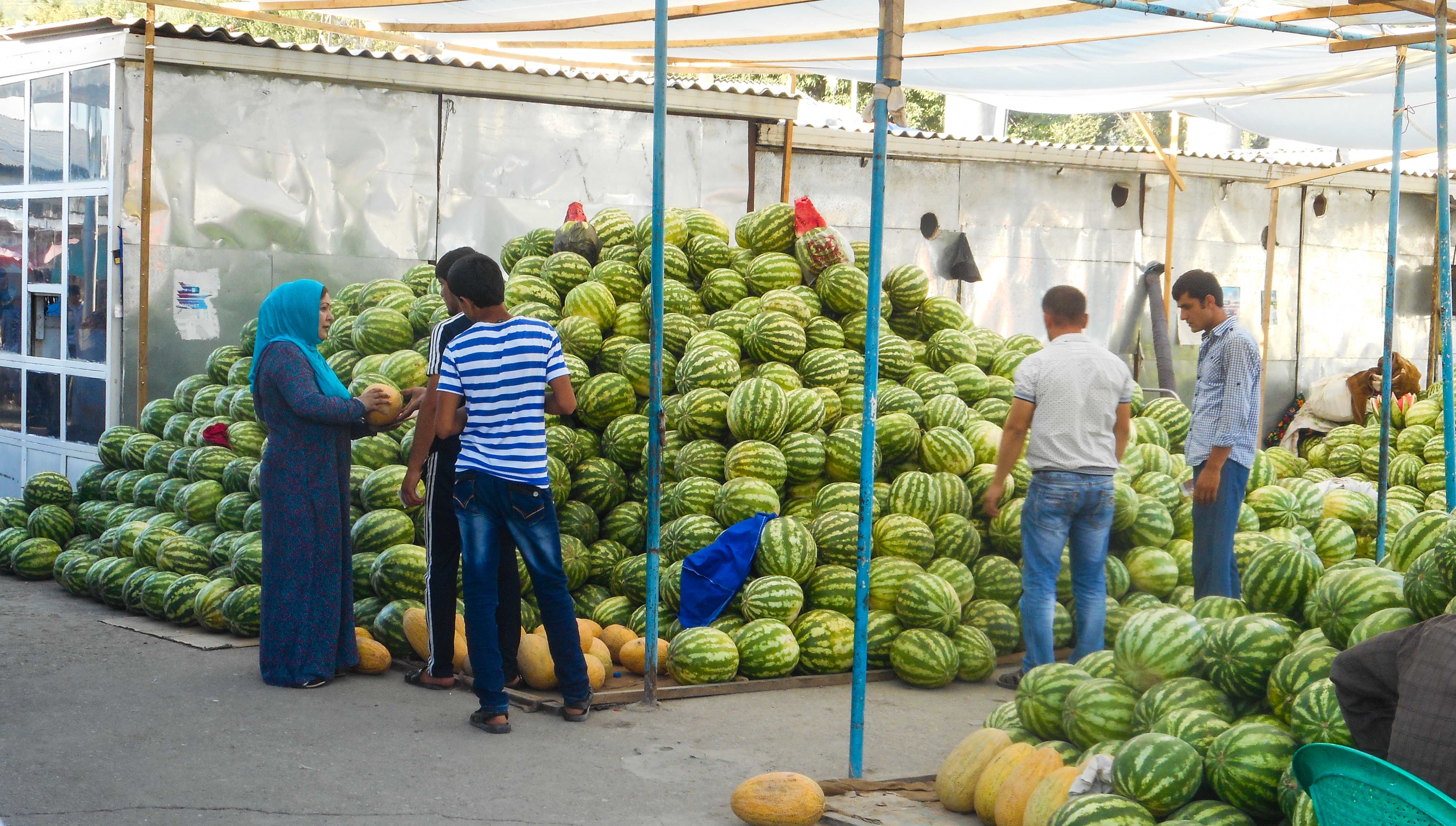 We discovered that Tajiks are completely crazy about watermelon.  It is EVERYWHERE. Just as in France you see people walking around everywhere with baguettes under their arms, In Tajikistan everyone on the street seems to be carrying a watermelon home.